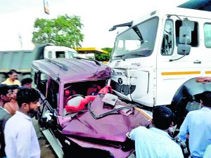 डंपर व एसयूवी में टक्कर, आठ लोग हुए जख्मी