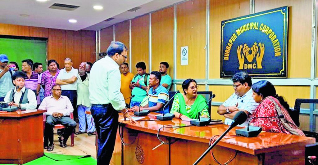 अतिक्रमण हटाओ अभियान को लेकर दुर्गापुर चेंबर ऑफ कॉमर्स एंड इंडस्ट्री के पदाधिकारियों ने निगम प्रशासक के साथ मुलाकात कर अपनी मांगों से उन्हें अवगत कराया. इस दौरान बेनाचिटी बाजार के अधिकांश दुकानदार उपस्थित रहे. शहर को अतिक्रमण मुक्त करने के लिए प्रशासन की ओर से अभियान चलाया जा रहा है.