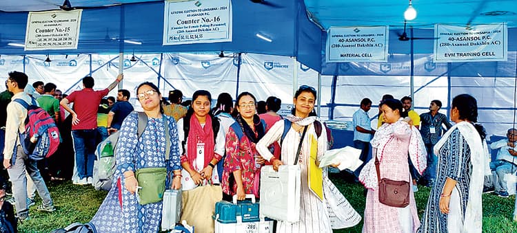 आसनसोल. लोकसभा चुनाव के चौथे चरण में आसनसोल लोकसभा क्षेत्र के लिए सोमवार यानी 13 मई को मतदान होने जा रहा है. चुनाव को लेकर आसनसोल पॉलिटेक्निक कॉलेज स्थित डीसीआरसी केंद्र में रविवार को मतदान कर्मियों का हुजुम उमड़ पड़ा था. डीसीआरडी सेंटर से सभी मतदान कर्मी अपने अपने मतदान केंद्र के लिए रवाना हो जायेंगे. इस बार के लोकसभा चुनाव में जिले में 24 महिला बूथ स्थापित किये गये हैं. निर्वाचन आयोग ने पूरी तरह से इन बूथों की जिम्मेवारी महिला मतदान कर्मियों को दी है. इन सभी बूथों में पीठासीन अधिकारी से लेकर सभी पॉलिंग पर्सनेल महिला मतदान कर्मी होंगी. रविवार को डीसीआरसी केंद्र से मतदान केंद्रों की ओर रवाना होने से पूर्व इवीएम, वीवीपैट आदि निर्वाचन सामग्री संग्रह करती महिला मतदान कर्मियों में काफी उत्साह देखने को मिला.