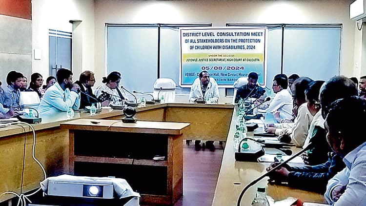 आसनसोल. कलकत्ता हाई कोर्ट के जुवेनाइल जस्टिस सचिवालय के निर्देशानुसार सोमवार को आसनसोल के सर्किट हाउस में विकलांग बच्चों की सुरक्षा पर सभी हितधारकों की जिला स्तरीय परामर्श बैठक हुई. बैठक में बच्चों को विकलांगता से बचाने को लेकर विचार विमर्श किया गया. डिस्ट्रिक्ट लीगल सर्विसेज अथॉरिटी के सचिव फास्ट ट्रैक कोर्ट के जज संजीत अगस्ता ने जिला स्वास्थ्य विभाग के अधिकारी से बच्चों को विकलांगता से बचाने को लेकर स्वास्थ्य परिसेवा के बारे में जानकारी ली. बैठक में जिला जज गोपाल कुमार डालमिया, दुर्गापुर एडीजे कोर्ट के जज शैलेंद्र कुमार सिंह, डिस्ट्रिक्ट मजिस्ट्रेट पॉक्सो कोर्ट तथा डीएलएसए के कार्यालय अधीक्षक सत्यजीत मुखर्जी, डीसीटीयू राजकुमार मिश्रा आदि मौजूद थे. सीएमएस शेख मोहम्मद यूनुस ने बताया कि देश के संविधान के अनुसार आम नागरिकों के समान दिव्यांग बच्चों के भी संवैधानिक अधिकार हैं. बच्चों को विकलांगता से बचाने के लिए जन्म से लेकर युवा अवस्था तक श्रेणीबद्ध तरीके से स्क्रीनिंग की जाती है. दिव्यांग बच्चों की स्कूल स्तर पर स्क्रीनिंग प्रथम चरण में होती है, उसके पश्चात बेहतर ट्रीटमेंट के लिए उन्हें रेफर किया जाता है. उनके इलाज की प्रक्रिया को स्वास्थ्य विभाग की ओर से नियमित अंतराल पर फॉलो अप किया जाता है. इसके साथ ही दिव्यांग बच्चों को यूडीआइडी कार्ड मुहैया कराया जाता है. इन दिव्यांग बच्चों में मानसिक रोगों की प्रवृत्ति की जांच की जाती है. ऑडियो मैट्रिक टेस्ट तथा स्पीच थेरेपी के माध्यम से उनकी मानसिक स्थिति की जांच की जाती है. मोहम्मद शेख यूनुस ने बताया कि जिला स्वास्थ्य विभाग के पास सुविधाएं हैं लेकिन सुनने के यंत्र मुहैया कराने को लेकर कोई व्यवस्था नहीं है. इसके साथ ही स्वास्थ्य विभाग ऑर्थोपेडिक चिकित्सा के माध्यम से जांच पूरी कराता है. लेकिन जिला स्वास्थ्य विभाग के पास कृत्रिम अंग प्रत्यारोपण के विशेषज्ञ की कमी हैं. सीएमएस ने बताया कि इस बैठक की रिपोर्ट सुप्रीम कोर्ट में अग्रसारित कर दी जायेगी.च सुप्रीम कोर्ट के निर्देश के अनुसार सरकारी प्रावधान बनाया जायेगा. डीएलएस कार्यालय अधीक्षक सत्यजित मुखर्जी ने कहा कि ऑब्जर्वेशन होम में दिव्यांग बच्चों को किस प्रकार से सुरक्षित रखा जा सकता है इस विषय को लेकर बैठक में चर्चा हुई.