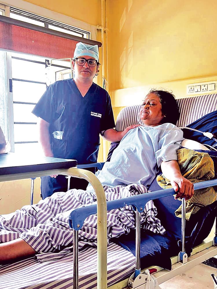 संवाददाता, हावड़ा. शिवपुर स्थित श्री जैन हॉस्पिटल एंड रिसर्च सेंटर के डॉक्टरों ने एक जटिल ऑपरेशन को सफल किया है. डॉ सिराज अहमद और डॉ शांतनु सिन्हा ने एक वृद्धा के पेट से करीब आठ किलोग्राम का सिस्ट ऑपरेशन करके निकाला है. यह सिस्ट महिला के लीवर में था. ऑपरेशन के बाद महिला की तबीयत स्थिर है. कुछ दिनों बाद महिला को अस्पताल से डिस्चार्ज कर दिया जायेगा. जानकारी के अनुसार, डुमुरजला की चंद्रा दास (60) को काफी समय से पेट में दर्द, उल्टी और सांस लेने में परेशानी हो रही थी. शारीरिक परेशानी काफी बढ़ने के बाद परिजनों ने पहले स्थानीय डॉक्टर को दिखाया. कई जांच होने के बाद परिजनों को पता चला कि महिला के लीवर में सिस्ट है. सिस्ट का आकार एक फुटबॉल से अधिक है. परिजनों ने डॉ अहमद से संपर्क साधा. सात जुलाई को महिला अस्पताल में भर्ती हुई. ऑपरेशन के लिए डॉ अहमद के नेतृत्व में एक टीम बनायी गयी. दो सर्जन के अलावा गायनोकॉलोजिस्ट को भी टीम में शामिल किया गया. गुरुवार को महिला का ऑपरेशन किया गया. डॉक्टरों ने बताया कि ऑपरेशन बहुत जटिल था. करीब साढ़े चार घंटे तक ऑपरेशन चला. महिला अभी डॉक्टरों की निगरानी में है. अगले सप्ताह उसे डिस्चार्ज किया जायेगा.महिला के लीवर में यह सिस्ट बचपन से था. पिछले कुछ महीनों से उन्हें शारीरिक परेशानी हो रही थी. शुरुआत में उन्होंने ध्यान नहीं दिया. हाल ही में उन्हें सिस्ट होने का पता चला. ऑपरेशन के दौरान लीवर का दो-तिहाई हिस्सा काट कर अलग कर दिया गया है. सिस्ट का वजन लगभग आठ किलोग्राम था. सिस्ट फैल कर फेफड़ा तक पहुंच गया था. यही कारण है कि उन्हें सांस लेने में भी तकलीफ हो रही थी. फिलहाल उनकी तबीयत में सुधार है. डॉ सिराज अहमद, सर्जन