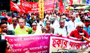 कोलकाता. अपनी विभिन्न मांगों को लेकर महानगर की सड़कों पर हाॅकरी करने वाले हाॅकरों के विभिन्न संगठनों ने निगम मुख्यालय के सामने एक दिवसीय धरना दिया. मौके पर हाॅकरों की ओर से मेयर को मांग पत्र संबंधी ज्ञापन भी सौंपा गया. अपने ज्ञापन में हाॅकरों ने कहा कि केंद्रीय हाॅकर कानून के तहत उचित पुनर्वास व न्यूनतम एक महीने के पहले हाॅकरों को हटाना नहीं चलेगा. पुलिस का अत्याचार बंद करना होगा. हाॅकरों में विभाजन करना नहीं चलेगा. केंद्रीय हाॅकर कानून 2014 को इस राज्य में भी लागू करने व हाॅकरों को सचित्र लाइसेंस परिचय पत्र देने के साथ हर जगह वेंडिंग कमेटी बनाने व उसमें केंद्रीय ट्रेड यूनियन के सदस्यों को रखने के साथ तुरंत वेंडिंग कमेटी द्वारा किये गये सर्वे की तालिका देने के साथ बारिश के समय छावनी लगाने की अनुमति देने की मांग ज्ञापन में की गयी. धरना में पश्चिम बंग स्ट्रीट हॉकर्स फेडरेशन, बंगाल हाॅकर्स एसोसिएशन, कलकत्ता स्ट्रीट हाॅकर्स फेडरेशन, जयहिंद कलकत्ता हाॅकर्स यूनियन, सियालदह अंचल हाॅकर्स यूनियन, तिलजला-कसबा हाॅकर्स यूनियन के अलावा काॅलेज स्ट्रीट हाॅकर्स यूनियन समेत अन्य यूनियनें शामिल थीं. धरना दे रहे हॉकरों का कहना था कि अगर उनकी मांगों पर गौर नहीं किया गया, तो उनके अस्तित्व पर संकट आ जायेगा. लिहाजा वे लगातार आंदोलन करने पर मजबूर हो जायेंगे.