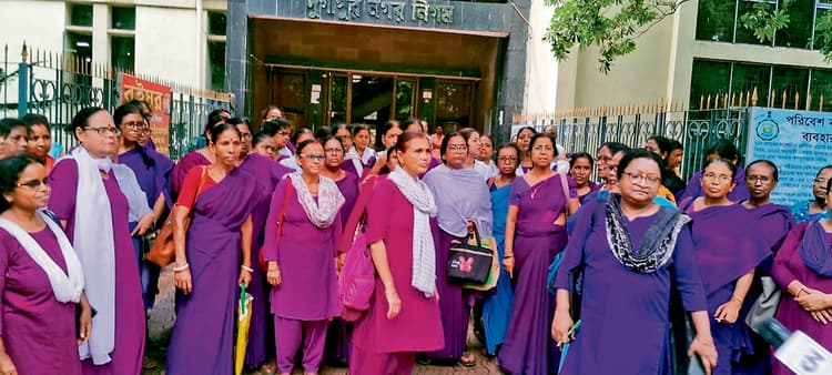 दुर्गापुर. सिटी सेंटर स्थित दुर्गापुर नगर निगम मुख्यालय के बाहर सैकड़ों स्वास्थ्यकर्मियों ने जुट कर विरोध प्रदर्शन किया. उनकी शिकायत है कि निगम के कई अधिकारी जब तब उनसे दुर्व्यवहार करते हैं. दिन पर दिन निगम अधिकारियों के बर्ताव को लेकर स्वास्थ्यकर्मियों की शिकायतें बढ़ती जा रही हैं. इससे निगम कार्यालय में कामकाज का माहौल बिगड़ रहा है. सोमवार को ‘पौर स्वास्थ्य कर्मी कॉन्ट्रैक्टचुवल यूनियन’ के बैनर तले निगम के हेल्थवर्कर्स ने विरोध प्रदर्शन किया. यूनियन की संयुक्त सचिव केका पाल ने आरोप लगाया कि निगम के कई स्वास्थ्य अधिकारी जब तब स्वास्थ्यकर्मियों का अपमान करते रहते हैं. निगम के हेल्थवर्कर्स को प्रति माह मात्र 5,250 रुपये का वेतन मिलता है. इतने वेतन पर स्वास्थ्य संबंधी कार्यों के लिए खाते खरीदने के अलावा हेल्थवर्कर्स पर अतिरिक्त काम का दबाव बनाया जाता है. अस्पताल में प्रसव के दौरान जच्चा या बच्चा की मौत होने पर निगम के अधिकारी, अक्सर स्वास्थ्यकर्मियों पर गुस्सा निकालते हैं. अपनी हताशा का ठीकरा स्वास्थ्यकर्मियों पर फोड़ते हैं. इस बाबत पूछने पर निगम की प्रशासक मंडली की सदस्य राखी तिवारी ने कहा कि हेल्थ अफसरों पर ऐसा आरोप लगाना गलत है. अक्सर सही ढंग से काम करने को कहने पर स्वास्थ्यकर्मी उखड़ जाते हैं.