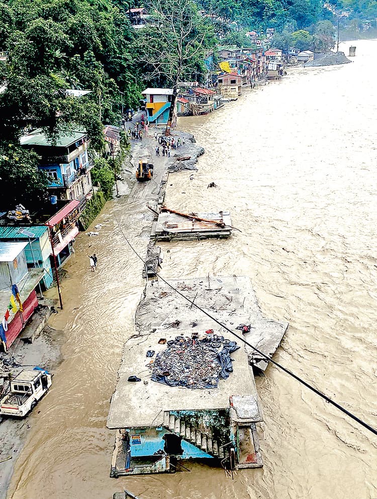 कोलकाता. उत्तर पूर्व क्षेत्र में स्थित पड़ोसी राज्य सिक्किम में लगातार बारिश के कारण तबाही और तीस्ता नदी के उफान से पश्चिम बंगाल सिंचाई विभाग ने राज्य के उत्तर हिस्से में स्थित जिलों के लिए अलर्ट जारी किया है. यह जानकारी शुक्रवार को राज्य के सिंचाई विभाग के वरिष्ठ अधिकारी ने दी. उन्होंने कहा कि बैराजों से पानी छोड़े जाने के कारण तीस्ता नदी का जलस्तर बढ़ गया है और इसके कारण जलपाईगुड़ी जिले में तीस्ता के दोनों ओर के इलाकों में बाढ़ का खतरा पैदा हो गया है. गौरतलब है कि तीस्ता राज्य की प्रमुख नदियों में से एक है और जलपाईगुड़ी जिला इस नदी के बाढ़ क्षेत्र में आता है. जिले के गाजोलडोबा में नदी पर एक बैराज बनाया गया है. पश्चिम बंगाल के उत्तरी हिस्से में दार्जिलिंग और कालिम्पोंग जिले सिक्किम की सीमा से सटे हैं, जहां गुरुवार को बारिश के कारण हुए भूस्खलन ने तबाही मचायी, जिसमें छह लोगों की मौत हो गयी. अधिकारी ने बताया कि सिक्किम में बैराजों से पानी छोड़ने के कारण तीस्ता का जलस्तर बढ़ रहा है. इस दौरान अलर्ट जारी कर दिया गया है. तीस्ता का पानी तेजी के साथ नीचे की ओर आ रहा है और हमने सभी एहतियाती कदम उठाये हैं. सभी अधिकारियों की छुट्टियां रद्द कर दी गयी हैं. उन्होंने बताया कि जलपाईगुड़ी जिला प्रशासन तीस्ता के समीप रहने वाले लोगों से ऊंचे स्थानों पर जाने का अनुरोध कर रहा है. उन्होंने बताया कि मछुआरों को नदी में न जाने की सलाह दी गयी है. उन्होंने कहा कि कई जगहों पर तीस्ता नदी लगभग उपनगरों में घुस रही है. पहाड़ों से इतना पानी बहकर आ रहा है कि बैराज के लिए उसे रोक पाना संभव नहीं है. इसके परिणामस्वरूप समतल भूमि प्रभावित होगी. सुरक्षित स्थानों पर पहुंचाये गये ग्रामीण उन्होंने कहा कि नावों से लेकर बचाव उपकरणों तक सब कुछ तैयार रखा गया है. स्थानीय लोगों को नदी के किनारे वाले स्थान खाली करने को कहा गया है. उन्होंने बताया कि गुरुवार को एक उप जिलाधिकारी जलढाका नदी की बाढ़ की स्थिति की समीक्षा करने के लिए मयनागुड़ी गये थे. उन्होंने बताया कि प्रशासन ओडलाबाड़ी ग्राम पंचायत के ग्रामीणों को सुरक्षित स्थान पर पहुंचाने के लिए कार्य कर रही है. पड़ोसी राज्य सिक्किम में गुरुवार को भारी बारिश के कारण हुए भूस्खलन से मंगन जिले में भारी तबाही हुई, जिसमें कम से कम छह लोगों की मौत हो गयी और 1500 से अधिक पर्यटक फंस गये हैं. बताया गया है कि संगकालांग में नवनिर्मित बेली पुल ढह गया, जिससे मंगन से दजोंग और चुंगथांग के बीच संपर्क टूट गया. भूस्खलन के कारण सड़कें अवरुद्ध हो गयीं और कई घर जलमग्न व क्षतिग्रस्त हो गये, जबकि बिजली के खंभे भी बह गये. सिंचाई विभाग के अधिकारियों को मौके पर निरीक्षण के लिए भेजा गया है. जलपाईगुड़ी सदर उप मंडल कार