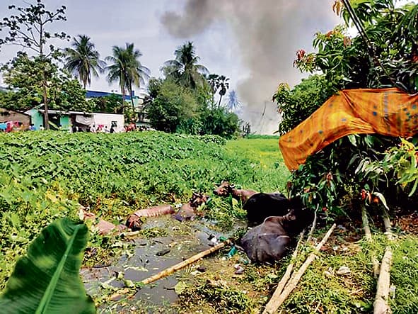 दमदम. उत्तर 24 परगना के दमदम के छाताकल के मेला बागान इलाके में शनिवार दोपहर लगी भीषण आग ने सैकड़ों परिवार का आशियाना छीन लिया. उनके सामने रात गुजारने की भी समस्या आ गयी है. करीब 130 परिवार बेघर हो गये हैं. आग में उनका सबकुछ जलकर खाक हो गया. आग की घटना में अब तक किसी के हताहत होने की खबर नहीं है, लेकिन वहां स्थित खटाल की दर्जनों गाय-भैंस जलकर मर गयी हैं.