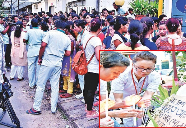 कोलकाता: इलाज के अभाव में एक नर्स की गुरुवार सुबह अस्पताल में मौत हो गयी. यह घटना सॉल्टलेक स्थित आमरी अस्पताल की है. मृतका का नाम उमा जैस (24) था. ओडिशा के राउरकेला की रहनेवाली उमा आमरी में ही कार्यरत थी. उसकी मौत से आक्रोशित सहकर्मियों ने अस्पताल के एचआर विभाग में काम करनेवाले एक अधिकारी की जमकर पिटाई की. साथ ही अस्पताल में तोड़फोड़ भी की. खबर पाकर मौके पर पहुंची स्थानीय थाना की पुलिस ने प्रदर्शनकारियों को समझाकर शांत कराया.