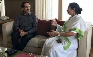 मुंबई/कोलकाता : शिवसेना अध्यक्ष उद्धव ठाकरे ने गुरूवार को पश्चिम बंगाल की मुख्यमंत्री ममता बनर्जी से मुलाकात की, जिससे राजनीतिक गलियारों में अटकलों का बाजार गर्म हो गया है. शिवसेना प्रमुख अपने बेटे आदित्य ठाकरे के साथ गुरूवार दोपहर ममता बनर्जी से मिलने दक्षिण मुंबई के एक होटल में पहुंचे, जहां तृणमूल सुप्रीमो ठहरी हुई हैं. दोनों के बीच हुई यह भेंट लगभग डेढ़ घंटे तक चली.