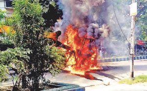 कोलकाता. बेपरवाह गति से गुजर रही क्रेन (हाइड्रोलिक लिफ्टिंग मशीन) के धक्के से एक छात्रा की मौत को लेकर बेलियाघाटा का सीआइटी मोड़ इलाका रणक्षेत्र में तब्दील हो गया. उत्तेजित लोगों ने क्रेन में आग लगा दी. साथ ही लोगों ने इलाके मेें पथावरोध व विरोध प्रदर्शन करने लगे. स्थिति नियंत्रित करने आयी पुलिस को […]