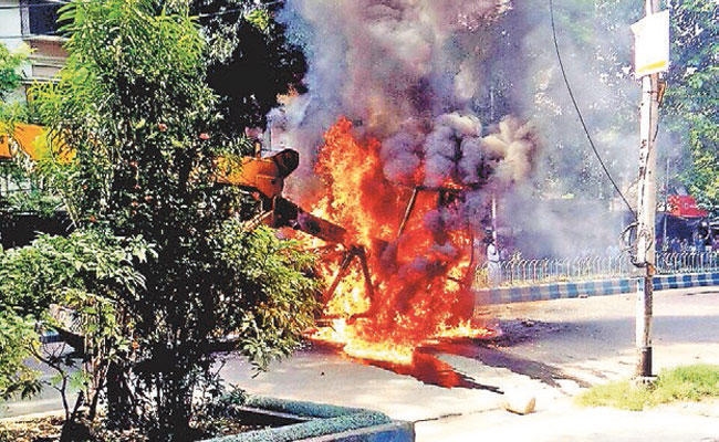 कोलकाता. बेपरवाह गति से गुजर रही क्रेन (हाइड्रोलिक लिफ्टिंग मशीन) के धक्के से एक छात्रा की मौत को लेकर बेलियाघाटा का सीआइटी मोड़ इलाका रणक्षेत्र में तब्दील हो गया. उत्तेजित लोगों ने क्रेन में आग लगा दी. साथ ही लोगों ने इलाके मेें पथावरोध व विरोध प्रदर्शन करने लगे. स्थिति नियंत्रित करने आयी पुलिस को लोगों के गुस्से का भी सामना करना पड़ा.