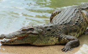 नदी किनारे एक बड़ा मगरमच्छ पकड़ाया