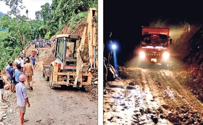 मंगलवार को सुबह से पीडब्ल्यूडी के राजमार्ग डिवीजन दो जेसीबी मशीनें सड़क को ठीक करने में लगी थीं. मंगलवार को भी बारिश के कारण भूस्खलन की जगह पहाड़ों से पानी की धारा निकलकर आ गयी. इससे और समस्या बढ़ गयी. देर शाम रास्ता बनाकर एक-दो गाड़ियों को किसी तरह गुजारा गया. इस बीच एक पिकअप गाड़ी का एक्सेल टूट गया और रास्ता पूरी तरह ठप पड़ गया.