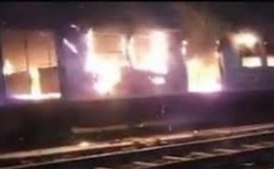 अधिकारियों ने बताया कि शनिवार को सियालदह जाने वाली लालगोला ट्रेन जब धुबुलिया पहुंच रही थी, तो महिला और विक्रेता बोगियों में आग की लपटें देखीगयीं.