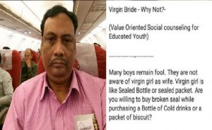 इस पोस्ट में उन्होंने लिखा "बहुत सारे लड़के बेकवूफ बने हुए हैं. वो बीवी के रूप में एक वर्जिन लड़की को लेकर जागरूक नहीं हैं. वर्जिन लड़की एक सील बंद बोतल या सील बंद पैकेट की तरह है. क्या तुम सील टूटी कोल्ड ड्रिंक की बोतल या सील खुले बिस्किट के पैकेट को खरीदना पसंद करोगे? इसी तरह तुम्हारी बीवी का केस है".
