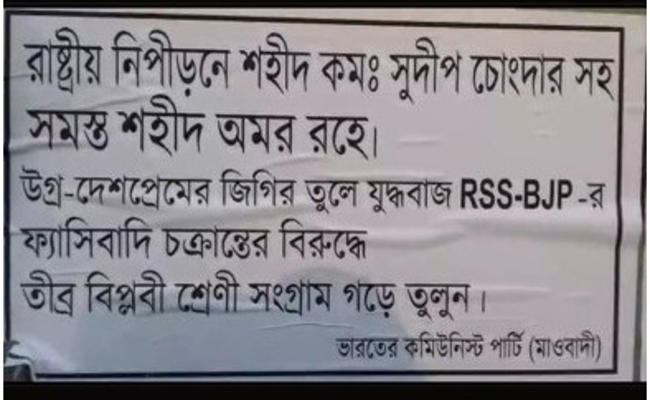 पश्चिम बंगाल में दो जगह माओवादी पोस्टर मिलने से सनसनी, संघ और तृणमूल को दी चेतावनी