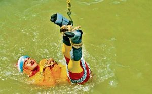 कोलकाता : अमेरिकी जादूगर हैरी हुडिनी के स्टंट को दोहराने की कोशिश में कोलकाता के मशहूर जादूगर चंचल लाहिड़ी ‘मैंड्रेक’ हुगली नदी में डूब गया. दरअसल, लाहिड़ी ने खुद को एक शीशे के पिंजरे में बंद कर लिया और उसमें छह ताले जड़ दिये. इसके बाद इस पिंजरे को क्रेन से नदी में उतारा गया. इस दौरान लाहिड़ी की आंखों पर पट्टी बंधी थी और हाथ-पैर भी जंजीर से बंधे हुए थे. वह दिखाना चाहता था कि बिना किसी मदद के पानी से बाहर आ सकता है, पर ऐसा नहीं हुआ. यह हादसा हावड़ा पुल के नीचे हुआ.