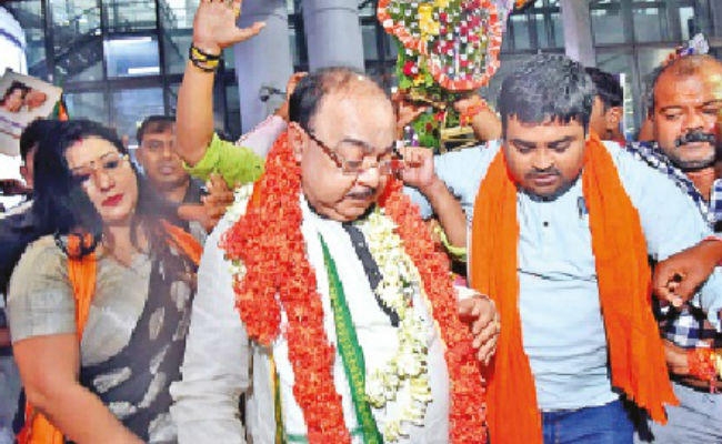 कोलकाता : भारतीय जनता पार्टी का दामन थामने के बाद राज्य के पूर्व मेयर व दमकलमंत्री शोभन चटर्जी रविवार को दिल्ली से कोलकाता लौटे. रविवार शाम 7.30 बजे कोलकाता एयरपोर्ट में भाजपा समर्थकों ने उनका भव्य स्वागत किया. एयरपोर्ट के बाहर समर्थकों की भारी भीड़ दोपहर से ही उनका काफी देर से इंतजार कर रही थी. गेट से बाहर निकलते ही समर्थकों ने उन्हें घेर लिया और जय श्री राम के नारे लगाने लगे. शोभन के साथ उनकी महिला मित्र बैशाखी बनर्जी भी मौजूद थी.