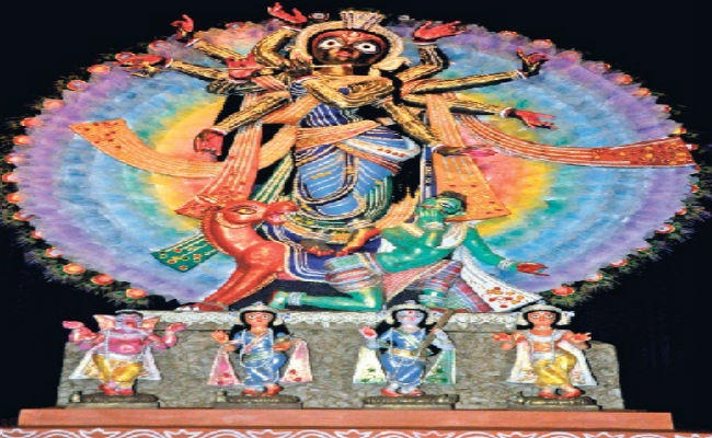 वहीं मंडप के अंदर दूसरे स्टेज में एक पिंजरा दिखाया गया है, उस पिंजरे के अंदर से पहले उसे कैद दिखाया गया है. वह मां से आजादी की प्रार्थना कर रहा है. तीसरे स्टेज में उस पिंजरे को खोला गया है और उस किन्नर को चैन व सुकून की जिंदगी में आम लोगों के साथ जीते दिखाया गया है. कमेटी के सह सचिव अजीत घोष का कहना है कि मंडप में एक किन्नर के अंदर ही मां के रूप को दिखाया गया है.