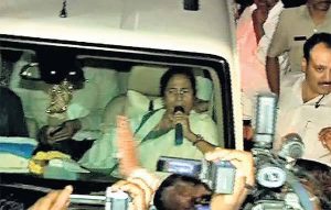 यदि सीने में दम है,तो आकर उन्हें हाथ लगा कर दिखाये. वह वहीं इंतजार कर रही हैं. वह तब तक यहां से नहीं जायेंगी, जब तक ये प्रदर्शनकारी नहीं हटेंगे. बनर्जी अपनी गाड़ी से उतरीं और लोगों को समझाने की कोशिश की,लेकिन प्रदर्शनकारी दोषियों को गिरफ्तार करने तथा पूरे मामले की सीबीआइ जांच कराने की मांग करते रहे. बाद में ममता ने खुद भी भाजपा व माकपा के खिलाफ आरोप लगाते हुए भाजपा दूर हटो, भाजपा धिक्कार के नारे लगाये. उन्होंने कहा कि भाजपा पूरे मामले को दबाने की कोशिश कर रही है. मिशनरियों के शांति जुलूस को नष्ट करने की साजिश कर रही है. इस बीच तृणमूल समर्थक भी घटना स्थल पर पहुंचे और मुख्यमंत्री के साथ भाजपा के खिलाफ नारेबाजी करने लगे.
