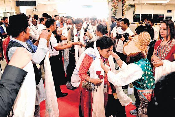 सिलीगुड़ी. सिक्किम के नाथुला मार्ग से ऐतिहासिक कैलाश मानसरोवर यात्रा गुरुवार को शुरू होगी. 40 श्रद्धालुओं का पहला जत्था बुधवार को सिक्किम की राजधानी गंगटोक पहुंच गया. एयर इंडिया की फ्लाइट से सभी श्रद्धालु जैसे ही दोपहर करीब एक बजे बागडोगरा एयरपोर्ट पहुंचे,एयरपोर्ट अथॉरिटी, सिक्किम पर्यटन विकास निगम (एसटीडीसी), अखिल भारतीय अग्रवाल सम्मेलन की सिलीगुड़ी इकाई व सीआइआइ की ओर से भव्य स्वागत किया गया. इस दौरान एयरपोर्ट शंखनाद व हरहर भोले के जयकारों से गूंजायमान हो उठा. दोपहर करीब दो बजे सिक्किम टूरिज्म के दो एसी बसों के माध्यम से सभी श्रद्धालुओं को सड़क मार्ग से गंगटोक के लिए रवाना किया गया. सभी श्रद्धालु बुधवार शाम को गंगटोक