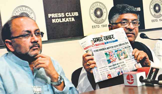 कोलकाता. मैं बिहार का रहने वाला हूं और मैंने देखा है कि हर चुनाव में चार-पांच लोग तो मरते ही मरते थे. यह सिलसिला बिहार में 40-50 साल चला. आज स्थिति बदली है. मुझे खुशी है कि आज चुनाव आयोग बिहार में शांतिपूर्ण चुनाव कराता है. लेकिन आज का (मंगलवार) प्रभात खबर देख कर मैं दंग रह गया. भाजपा समर्थकों के बदन पर खौलता तेल डालने की खबर पढ़ कर मैं परेशान हूं. यह कहना है केंद्रीय संचार मंत्री रविशंकर प्रसाद का. वह कोलकाता प्रेस क्लब में संवाददाता सम्मेलन को संबोधित कर रहे थे.