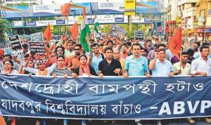 कोलकाता: अखिल भारतीय विद्यार्थी परिषद (एबीवीपी) ने सोमवार को कहा कि जादवपुर विश्वविद्यालय राष्ट्रविरोधी गतिविधियों का अड्डा बनता जा रहा है. संगठन की ओर से इसके खिलाफ सोमवार को जुलूस निकाल कर प्रदर्शन किया गया. एबीवीपी ने देशव्यापी आंदोलन छेड़ने की चेतावनी दी है.