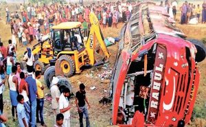 जानकारी के मुताबिक, चार मजदूरों की घटनास्थल पर ही मौत हो गयी, जबकि एक ने रजौली अस्पताल में इलाज के अभाव में दम ताेड़ दिया. घटना के बारे में स्थानीय लोगों ने बताया कि कोलकाता से आ रही सियाराम नामक बस के रजौली के अंधरबारी मोड़ के पास पहुंचते ही उसके पीछे के दोनों चक्के खुल कर बाहर निकल गये व वह अनियंत्रित होकर गड्ढे में पलट गयी. देखते ही देखते यात्रियों में चीख-पुकार मच गयी. घटना की जानकारी मिलते ही रजौली के एसडीएम शंभु शरण पांडेय, सीओ अशोक कुमार व थानाध्यक्ष अवधेश कुमार मौके पर पहुंचे व फंसे हुए यात्रियों को राहत पहुंचाने का काम किया. घायलों को तत्काल इलाज के लिए अस्पताल ले जाया गया.