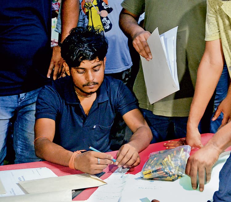 कोलकाता. कोलकाता पुलिस की स्पेशल टॉस्क फोर्स (एसटीएफ) ने रविवार को एक सूचना के आधार पर धर्मतला के 12बी बस स्टैंड पर अभियान चलाकर एक युवक को 120 कारतूस के साथ गिरफ्तार कर लिया. एसटीएफ की ओर से बताया गया कि अपराह्न मुखबिरों से मिली सूचना के आधार पर अधिकारियों ने बस स्टैंड और आसपास के इलाकों में अभियान चलाया . इस दौरान धर्मतला 12बी बस स्टैंड के एसबीएसटीसी टिकट काउंटर के पास एक युवक को पकड़ा गया और उसके बैग की जांच की गयी, जिसमें से कारतूस मिले. युवक का नाम रामकृष्ण माझी (26) बताया गया है, जो बर्दवान के केतुग्राम थाना क्षेत्र के कुलुन गांव का निवासी है. उसके पास से मेचेदा का एक बस टिकट भी मिला है. उसके कब्जे से बरामद कारतूस में 100 पीस 8 एमएम के हैं, जबकि 20 पीस 7.65 एमएम के हैं. आरोपी के खिलाफ मैदान थाने में प्राथमिकी दर्ज की गयी है. सोमवार को आरोपी की अदालत में पेशी होगी.