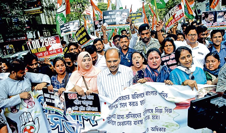 संवाददाता, कोलकाताएसआइआर सहित अन्य मुद्दों को लेकर बुधवार को प्रदेश युवा कांग्रेस की ओर से सुबोध मल्लिक स्क्वायर से धर्मतला तक एक विरोध जुलूस निकाला गया. जुलूस का नेतृत्व पूर्व प्रदेश अध्यक्ष अधीर रंजन चौधरी ने किया. जुलूस में बड़ी संख्या में पार्टी कार्यकर्ता उपस्थित थे. धर्मतला में जुलूस आकर खत्म हुआ, जहां एक सभा का आयोजन किया गया. सभा को संबोधित करते हुए चौधरी ने कहा कि आज पूरे देश में एसआइआर को लेकर चर्चा चल रही है. बंगाल में भी इसे लेकर चर्चा हो रही है.उन्होंने कहा कि राहुल गांधी ने देश में एक राजनीतिक क्रांति शुरू की है. चुनाव आयोग का काम लोगों को उनका मताधिकार देना है. चाहे अमीर हो या गरीब, हर वोटर के वोट की कीमत एक है. लेकिन आज चुनाव आयोग को लेकर सवाल उठ रहे हैं. यदि इसी तरह चलता रहा तो चुनाव प्रहसन में बदल जायेगा. लोकतंत्र खतरे में पड़ जायेगा. चुनाव में जीत-हार होता है, लेकिन आज देश को बचाना उनकी प्राथमिकता है. उन्होंने कहा कि देश का नागरिक कौन होगा, यह चुनाव आयोग तय करेगा या गृह मंत्रालय. चुनाव आयोग सवाल उठने पर कोई जवाब नहीं दे रहा है, भाजपा नेता जवाब दे रहे हैं. इससे साफ है कि दाल में कुछ काला है. उन्होंने कहा कि बंगाल सरकार की विफलता के कारण ही आज बड़ी संख्या में यहां के श्रमिक बाहर काम करने जाते हैं. उनका कोई रिकार्ड भी नहीं है. बंगाल में पंचायत से नगरपालिका चुनाव में वोटों की लूट की जाती रही है.