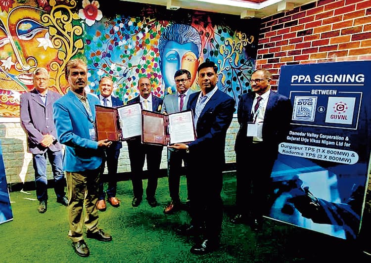 दामोदर वैली कॉरपोरेशन (डीवीसी) ने शनिवार को 559 मेगावाट बिजली आपूर्ति के लिए गुजरात ऊर्जा विकास निगम लिमिटेड (जीयूवीएनएल) के साथ एक बिजली खरीद समझौता (पीपीए) किया है. डीवीसी ने एक बयान में कहा है कि बिजली मंत्रालय द्वारा अनुमोदित समझौते से पश्चिम बंगाल में डीवीसी के आगामी दुर्गापुर तापीय बिजली केंद्र (एक गुणा 800 मेगावाट) से 359 मेगावाट और झारखंड में कोडरमा तापीय बिजली केंद्र चरण दो से 200 मेगावाट बिजली की आपूर्ति की जायेगी.हस्ताक्षर समारोह में डीवीसी के चेयरमैन एस सुरेश कुमार, सदस्य (वित्त) अरूप सरकार, डॉ जॉन मथाई, सुदीप्त अचार्य, संजीव श्रीवास्तव, सी प्रकाश, जे मुखर्जी के अलावा दोनों कंपनियों के प्रमुख अधिकारी शामिल थे. डीवीसी ने कहा कि समझौते को डीवीसी के उपभोक्ता सम्मेलन 2024 के दौरान औपचारिक रूप दिया गया, जो दो दिवसीय कार्यक्रम (15-16 नवंबर) था. इसमें डीवीसी के देश भर के लाभार्थियों के प्रतिनिधि एक साथ पहुंचे थे.
