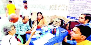 राज्य सरकार के ‘आमादेर पाड़ा, आमादेर समाधान’ (एपीएएस) और ‘दुआरे सरकार’ योजना के तहत मंगलवार को महानगर के एजेसी बोस रोड स्थित शुभनंदन कम्युनिटी हॉल में शिविर लगाया गया.