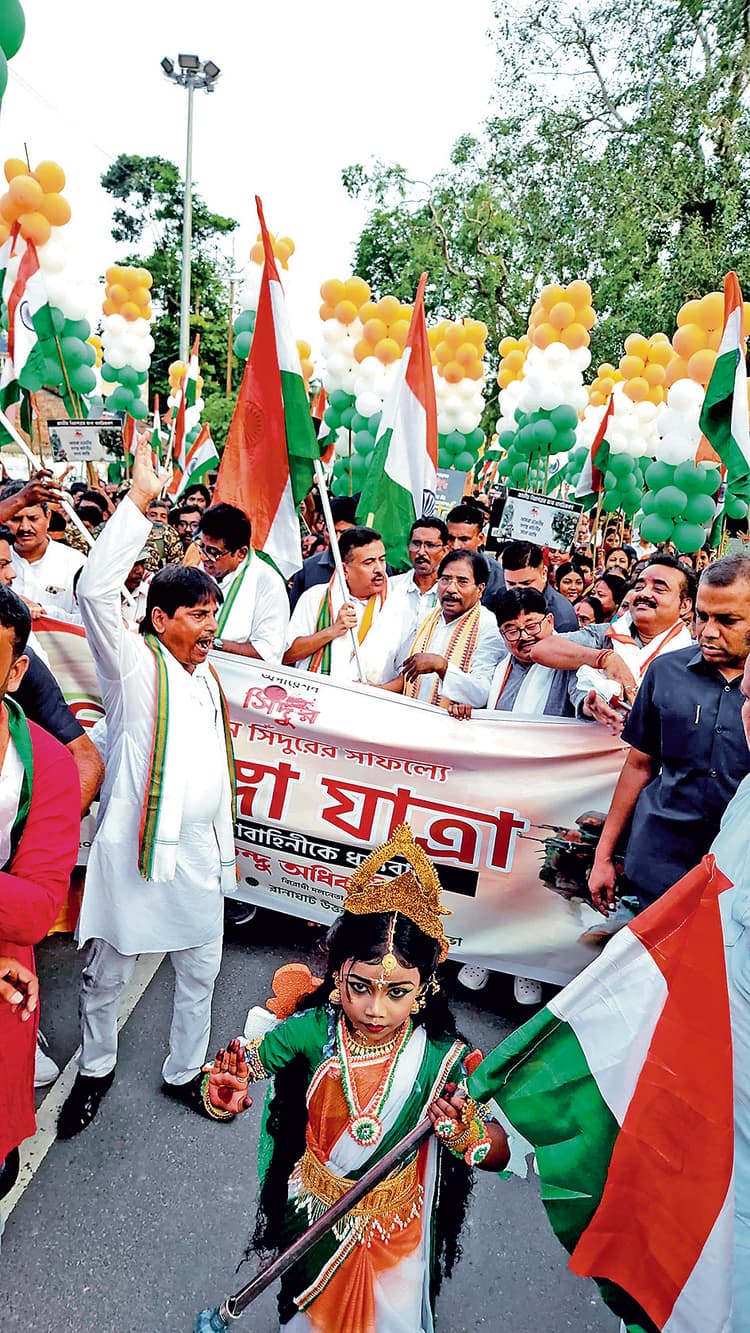 कोलकाता. पश्चिम बंगाल विधानसभा में विपक्ष के नेता शुभेंदु अधिकारी ने मंगलवार की नदिया ज़िले के राणाघाट में तिरंगा यात्रा का नेतृत्व किया. इस मौके पर भाजपा सांसद जगन्नाथ सरकार भी मौजूद रहे. इस मौक़े पर श्री अधिकारी ने शिक्षक नियुक्ति भ्रष्टाचार मामले में सीएम पर कटाक्ष करते हुए कहा कि सॉल्टलेक में विकास भवन के सामने प्रदर्शन कर रहे सभी योग्य शिक्षक हैं, सिर्फ़ यहां की तृणमूल सरकार ही अयोग्य हैं. उन्होंने आगे कहा कि नियुक्ति भ्रष्टाचार से राज्य की शिक्षा व्यवस्था कलंकित हुई है. राज्य की मुख्यमंत्री को इसकी जिम्मेदारी लेनी होगी. साथ ही उन्होंने सत्तारूढ़ पार्टी पर सत्ता का दुरुपयोग करने व भ्रष्टाचार में लिप्त होने का आरोप लगाया. इसके साथ की श्री अधिकारी ने विदेश दौरे के लिए अभिषेक बनर्जी का नाम प्रस्तावित किये जाने पर कहा कि तृणमूल कांग्रेस एक परिवारवाद की पार्टी है. इसलिए तृणमूल कांग्रेस सुप्रीमो ने यूसुफ़ पठान के जगह पर अभिषेक बनर्जी का नाम प्रस्तावित किया है.