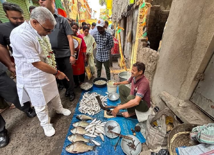 Bengal Election: खड़गपुर. जीतेश बोरकर. पश्चिम बंगाल में विधानसभा चुनाव को लेकर प्रचार अभियान जारी है. इस बार मछली बंगालियों की थाली से अधिक बंगाल की सियासत में दिखाई दे रही है. कोई उम्मीदवार मछली लेकर चुनाव प्रचार कर रहा है तो कोई जनसंपर्क के लिए मछली बाजार पहुंच जा रहा है. खड़गपुर सदर के भाजपा उम्मीदवार और बंगाल भाजपा के पूर्व प्रदेश अध्यक्ष दिलीप घोष भी चुनाव प्रचार करने मछली बाजार पहुंचे.