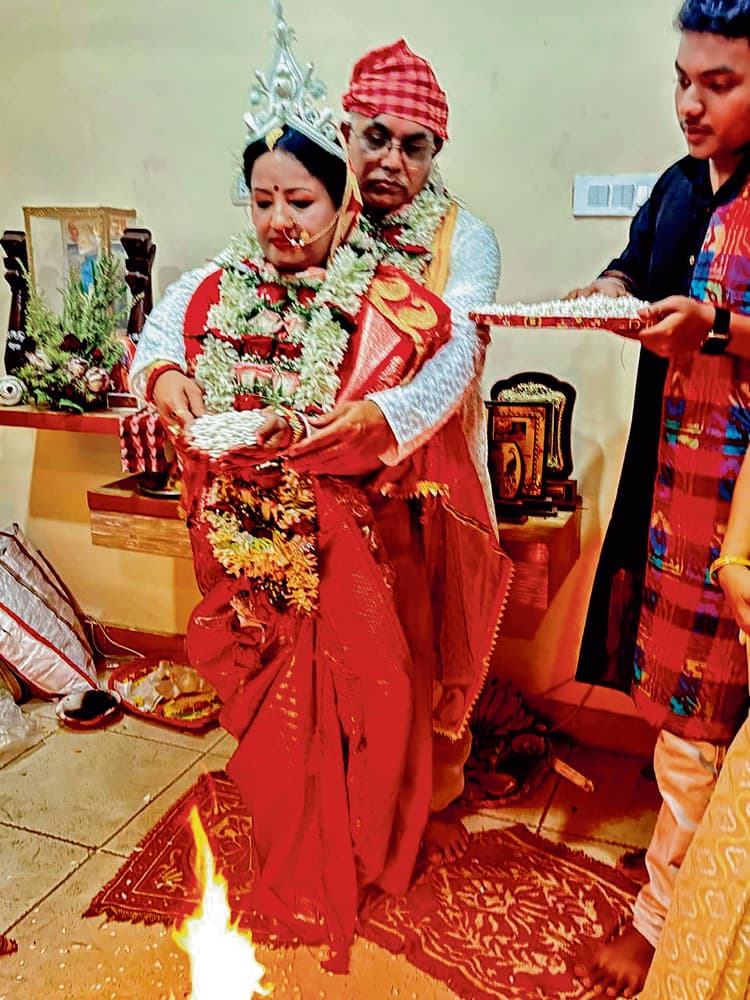 न्यूटाउन स्थित ठिकाने पर पूरी हुईं शादी की रस्में, पार्टी कार्यकर्ताओं ने दी बधाई