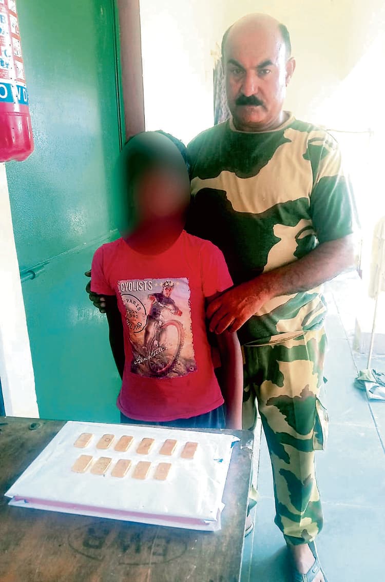 कोलकाता. एक महत्वपूर्ण तस्करी-रोधी अभियान में सीमा सुरक्षा बल (बीएसएफ) की 143वीं बटालियन के जवानों ने उत्तर 24 परगना के स्वरूपनगर में सीमा चौकी (बीओपी) बिठारी के पास एक बच्चे को पकड़ा. उसके पास से करीब 1.28 किलोग्राम के 11 सोने के बिस्कुट जब्त किये गये. सोने की कीमत करीब 1.64 करोड़ रुपये आंकी गयी है. बीएसएफ के एक अधिकारी ने बताया कि विशेष खुफिया जानकारी के आधार पर दहारकांडा गांव के पास भारत-बांग्लादेश सीमा पर तैनात बीएसएफ के जवान सीमा क्षेत्र के पास सोने की तस्करी की कोशिश कर रहे एक नाबालिग लड़के की ओर बढ़े. थोड़ी देर पीछा करने के बाद लड़के को पकड़ लिया गया और एक काले पॉलीथीन पैकेट में छिपाये गये 11 सोने के बिस्कुट जब्त किये गये. बाद में लड़के ने बताया कि उसकी मां ने उसे एक निर्धारित स्थान पर पैकेट पहुंचाने के लिए भेजा था. पकड़ा गया नाबालिग दहारकांडा गांव का ही निवासी है. पकड़े गये बच्चे और जब्त किये गये सोने को आगे की कानूनी कार्रवाई के लिए संबंधित प्राधिकारी को सौंप दिया गया है.