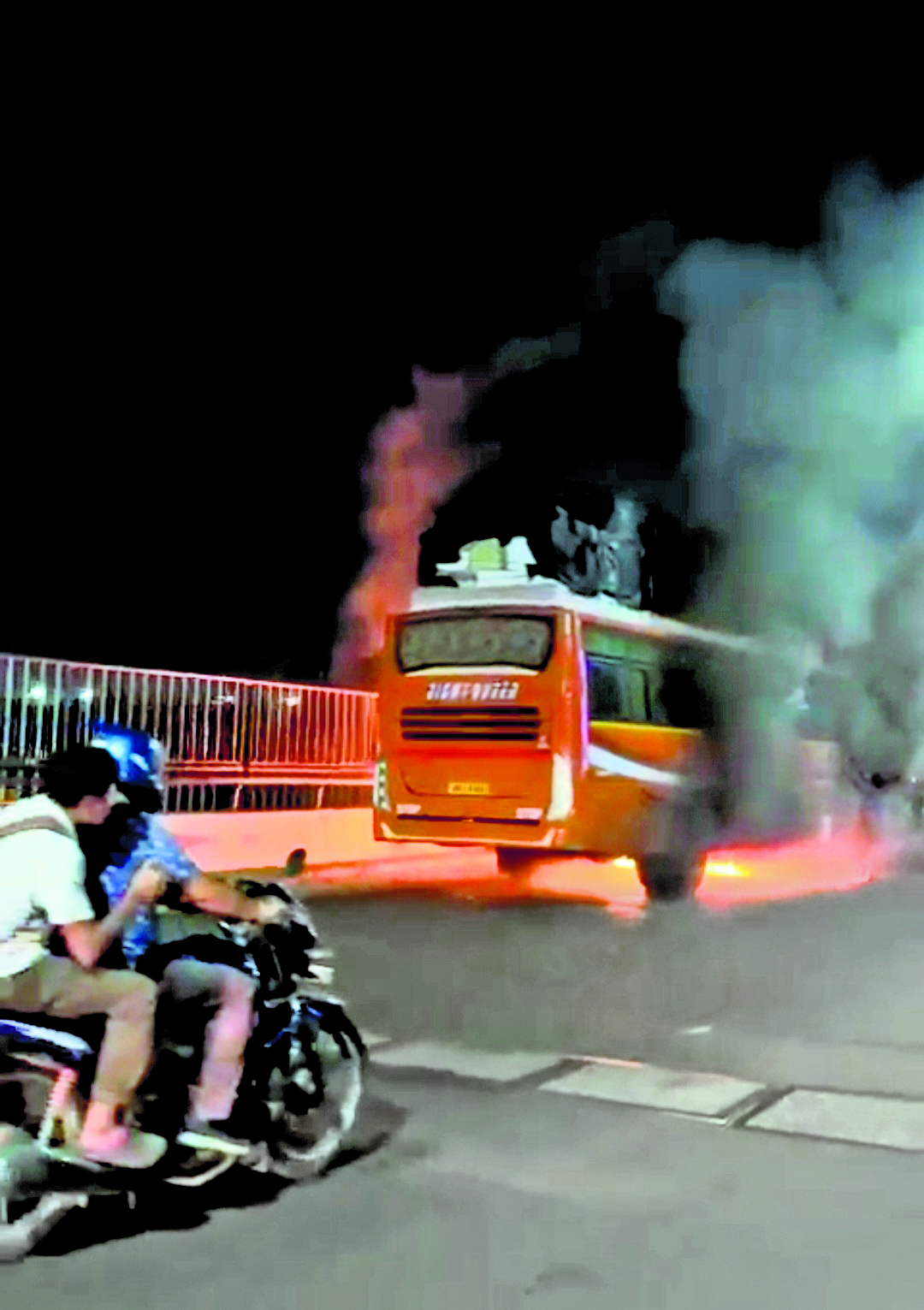 कोलकाता. द्वितीय हुगली सेतु पर यात्रियों से भरी एक लक्जरी बस में अचानक आग लग गयी. इस बात से अनजान चालक आग लगने के बाद भी बस को दौड़ाता रहा. आसपास से गुजर रहे अन्य वाहनों के चालकों ने शोर मचाकर बस चालक को बस में आग लगने की जानकारी दी. जिसके बाद बस को ब्रिज के एक छोर पर रोका गया. इसके बाद इसकी सूचना दमकल विभाग को दी गयी.