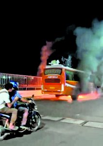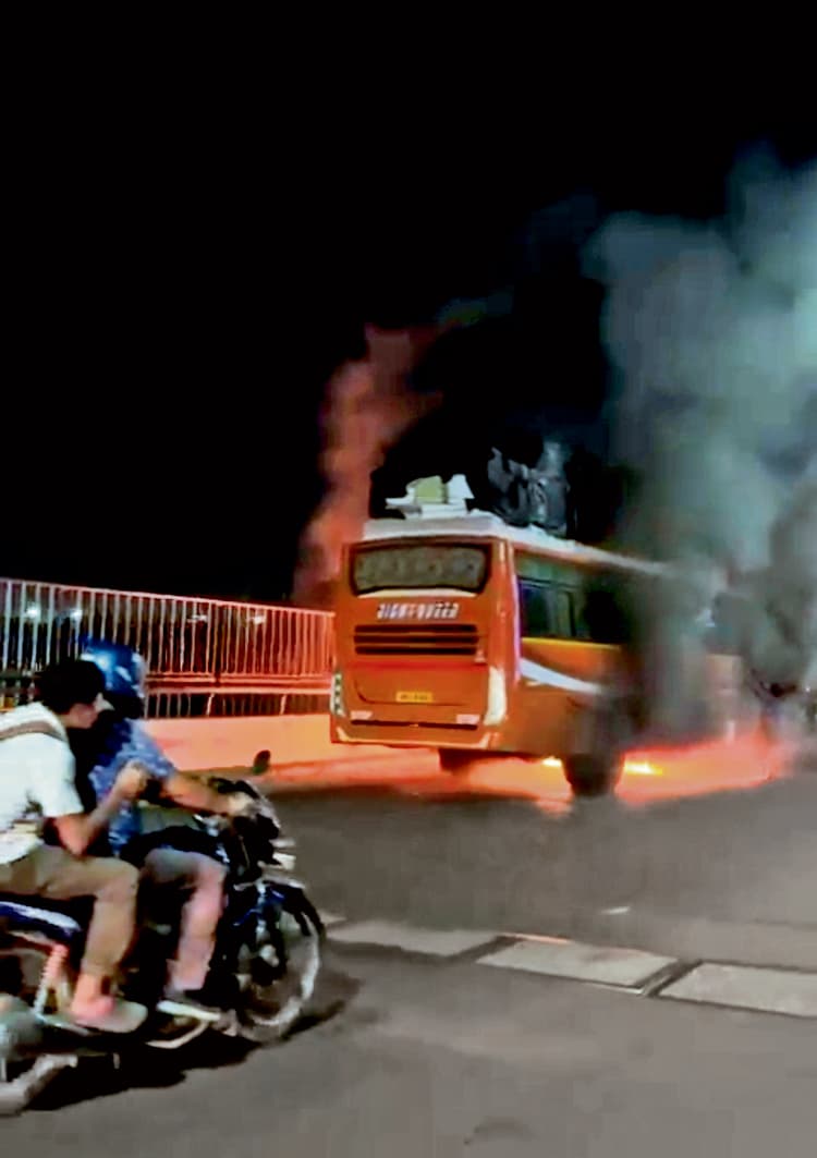 – विद्यासागर सेतु पर पहुंचते ही पिछले चक्के में लग गयी आग, अनजान चालक दौड़ाता रहा बस
