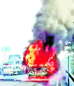 हादसा. यात्री वाहन में अचानक आग लगने से मची अफरातफरी