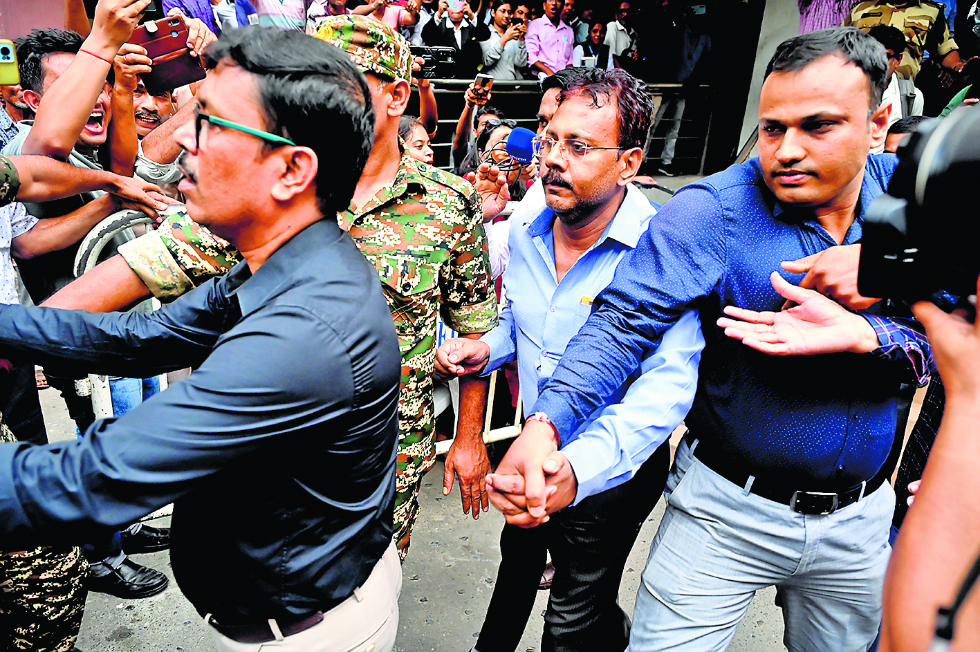 कोलकाता. आरजी कर मेडिकल कॉलेज एवं अस्पताल में वित्तीय अनियमितता के आरोपों में गिरफ्तार अस्पताल के पूर्व प्रिंसिपल डॉ संदीप घोष (53), विप्लव सिंह (52), सुमन हाजरा (46) और अफसर अली खान (44) को मंगलवार को अदालत ने आठ दिनों की सीबीआइ हिरासत में भेज दिया. चारों को मंगलवार को अलीपुर अदालत स्थित स्पेशल सीबीआइ कोर्ट में पेश किया गया, जहां केंद्रीय जांच एजेंसी ने आरोपियों को सीबीआइ हिरासत में भेजे जाने का आग्रह किया. साथ ही दावा किया कि चारों की भूमिका वित्तीय अनियमितता में महत्वपूर्ण है. ऐसे में उनसे पूछताछ जरूरी है. सभी पक्षों की दलीलें सुनने के बाद अदालत ने चारों को आठ दिनों की सीबीआइ हिरासत में भेजे जाने का आदेश दिया. गौरतलब है कि केंद्रीय अन्वेषण ब्यूरो के अधिकारियों ने सोमवार को संदीप घोष सहित चार आरोपियों को गिरफ्तार कर लिया. मंगलवार अपराह्न यहां निजाम पैलेस स्थित सीबीआइ दफ्तर से डॉ संदीप घोष को जब बाहर लाया गया, तब उनके खिलाफ लोगों ने जमकर नारेबाजी की. घोष को कड़ी सजा देने की मांग की गयी. कड़ी सुरक्षा के बीच घोष और अन्य आरोपियों को अलीपुर अदालत लाया गया, जहां अधिवक्ताओं के एक वर्ग ने भी घोष को लेकर नारेबाजी की. उनके समक्ष ‘चोर-चोर’ व ‘धिक्कार’ के नारे लगाये गये. इतना ही नहीं, अदालत से जब घोष को वापस सीबीआइ कार्यालय ले जाया जा रहा था, तभी अदालत परिसर में मौजूद लोगों की भीड़ में किसी शख्स ने उसे थप्पड़ जड़ दिया.