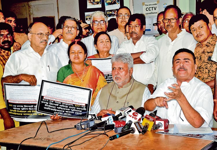 पश्चिम बंगाल विधानसभा में विपक्ष के नेता व भाजपा विधायक शुभेंदु अधिकारी ने सोमवार को आरोप लगाया कि तृणमूल कांग्रेस सरकार व ममता बनर्जी की पार्टी 10,000 रुपये लेकर रोहिंग्या व बांग्लादेशियों के नाम मतदाता सूची में शामिल करा रही है. भाजपा प्रतिनिधिमंडल के साथ शाम में राज्य के मुख्य निर्वाचन अधिकारी (सीईओ) मनोज कुमार अग्रवाल से मुलाकात व ज्ञापन सौंपने के बाद आयोग कार्यालय में पत्रकारों से बातचीत में शुभेंदु ने दावा किया कि दक्षिण 24 परगना जिले के काकद्वीप में तृणमूल ने 10,000 रुपये के बदले रोहिंग्याओं के नाम मतदाता सूची में जुड़वाये हैं. शुभेंदु ने कहा कि यह केवल काकद्वीप तक सीमित नहीं है. उन्होंने आरोप लगाया कि मतदाता सूची में फर्जी नाम डालने के लिए प्रशासन का उपयोग करके सभी जिलों में इसी तरह की गतिविधियां की जा रही हैं. उन्होंने आयोग से काकद्वीप में फर्जी मतदाता सूची मामले की सीबीआइ जांच की मांग की. साथ ही मुख्यमंत्री ममता बनर्जी, जो राज्य की गृह मंत्री भी हैं, के खिलाफ प्राथमिकी दर्ज कराने की मांग की.शुभेंदु ने यह आरोप उस घटना के बाद लगाया है जब एक बांग्लादेशी नागरिक ने हाल में एक बांग्ला न्यूज चैनल के साथ बातचीत में दावा किया कि उसने एक तृणमूल नेता को 10 हजार रुपये देकर मतदाता सूची में नाम शामिल कराये और वोटर आइ कार्ड बनावाये हैं, इस दावे के बाद रविवार को काकद्वीप के तृणमूल विधायक मंटूराम पाखिरा ने भी आरोप लगाया था कि रुपये लेकर कुछ सरकारी कर्मचारी अवैध लोगों के नाम वोटर लिस्ट में दर्ज किये हैं. पाखिरा ने आरोप लगाया कि काकद्वीप के एसडीओ और बीडीओ कार्यालय के कर्मचारी रुपये लेकर अवैध काम कर रहे हैं. इसके पीछे एक बड़ा रैकेट है.