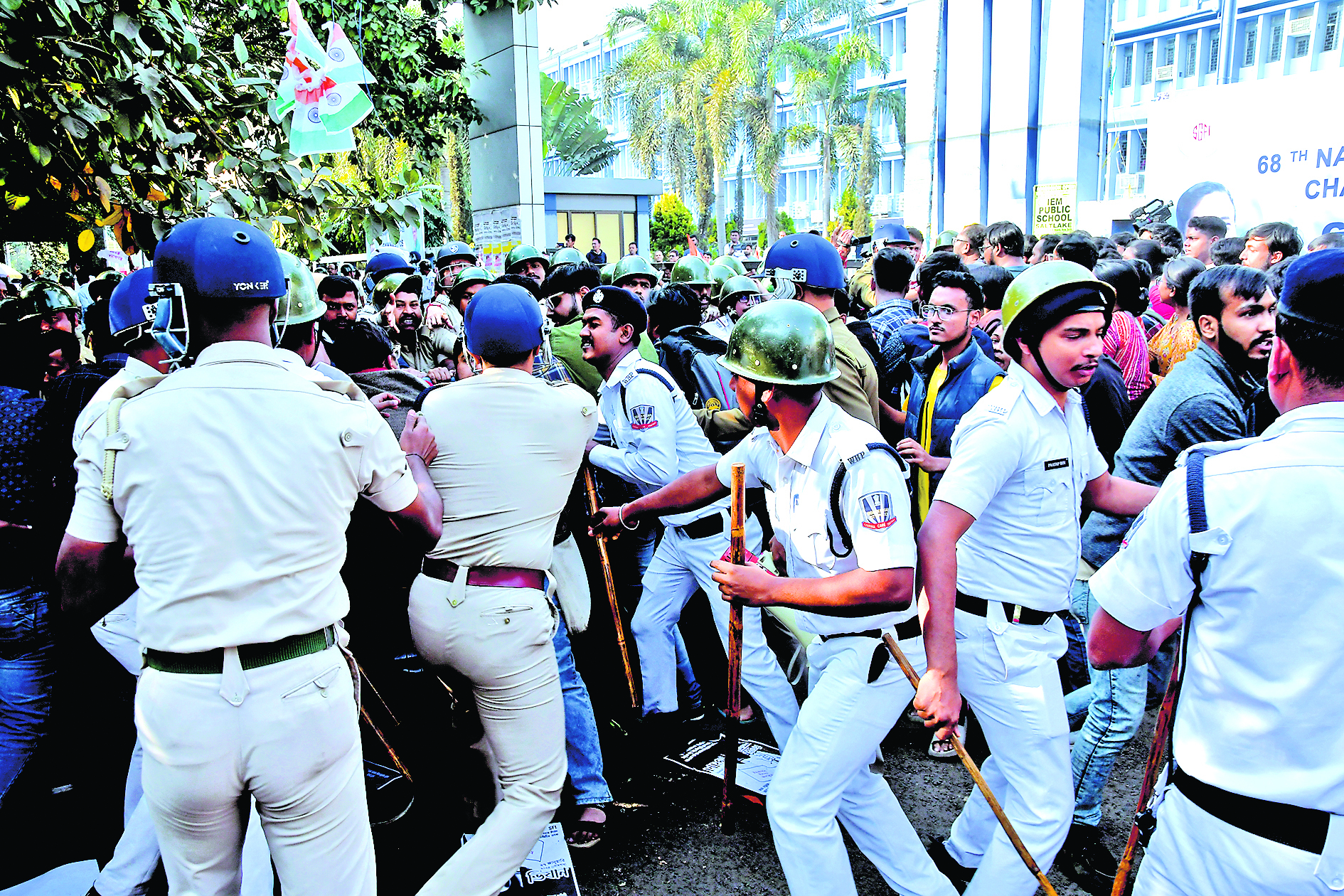 जानकारी के अनुसार, दोपहर को सॉल्टलेक के करुणामयी से विकास भवन तक एसएफआइ कार्यकर्ताओं ने जुलूस निकाला. विकास भवन से पहले ही पुलिस ने बैरिकेड लगा कर जुलूस को रोक दिया. इसके बाद इलाके में तनाव फैल गया. पुलिक के साथ धक्का-मुक्की होने पर पुलिस को लाठीचार्ज तक करना पड़ा. संगठन के एक सदस्य ने बताया कि वे लोग कोई अपराधी नहीं है. वे शांतिपूर्ण तरीके से आंदोलन कर रहे थे. राज्य में आठ हजार स्कूल बंद हो गये हैं. पुलिस ने बेवजह उनपर लाठी चार्ज किया. बाद में किसी तरह मामला शांति हुआ.डिस्क्लेमर: यह प्रभात खबर समाचार पत्र की ऑटोमेटेड न्यूज फीड है. इसे प्रभात खबर डॉट कॉम की टीम ने संपादित नहीं किया है