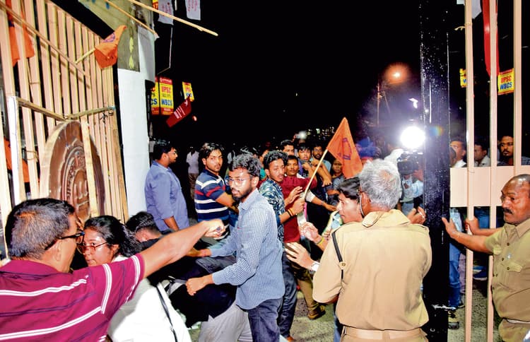 संवाददाता, कोलकाताशिक्षा मंत्री ब्रात्य बसु के इस्तीफे की मांग को लेकर मार्क्सवादी कम्युनिस्ट पार्टी (माकपा) की छात्र शाखा स्टूडेंट्स फेडरेशन ऑफ इंडिया (एसएफआइ) की सोमवार को कॉलेज एवं विश्वविद्यालय परिसरों में हड़ताल के दौरान विभिन्न वामपंथी छात्र संगठनों और तृणमूल कांग्रेस छात्र परिषद (टीएमसीपी) के समर्थकों के बीच कई जगहों पर झड़पें हुईं. इसी बीच, सोमवार शाम जादवपुर विश्वविद्यालय परिसर में जमकर हंगामा हुआ. शनिवार के बवाल के बाद सोमवार शाम को विश्वविद्यालय कैंपस के चार नंबर गेट के नजदीक एक छात्र संगठन के झंडे को हटाकर वहां अन्य छात्र संगठन का झंडा लगाने के बाद विद्यार्थियों के दो गुट आमने-सामने आ गये. हालात नियंत्रण में लाने में विश्वविद्यालय परिसर में तैनात सुरक्षा गार्ड नाकाम रहे. स्थिति को नियंत्रित करने के लिए रैपिड एक्शन फोर्स (रैफ) के जवानों को भी उतारना पड़ा. बताया जा रहा है कि शनिवार को अशांति की घटना के बाद जादवपुर विश्वविद्यालय परिसर से वामपंथी छात्र संगठन के सदस्यों ने सोमवार दोपहर में जादवपुर थाने तक जुलूस निकालने का आह्वान किया था. गोलपार्क से वापसी जुलूस भारतीय जनता युवा मोर्चा का था. जुलूस में अखिल भारतीय विद्यार्थी परिषद (एबीवीपी) के समर्थक भी थे. शाम को वामपंथी और एबीवीपी के समर्थकों में विश्वविद्यालय गेट पर टकराव हो गया. दोनों छात्र संगठनों के समर्थक एक-दूसरे को देखकर नारेबाजी करने लगे. कथित तौर पर कुछ वामपंथी छात्रों का आरोप है कि उस समय एक अन्य पार्टी के सदस्यों ने परिसर में घुसने की कोशिश की. इसे लेकर दोनों पक्षों में बहस हो गयी.सुरक्षा गार्डों ने हालात को देखते हुए चार नंबर गेट को बंद कर स्थिति को नियंत्रित करने की कोशिश की, लेकिन वे असफल रहे. आरोप है कि उस समय एक युवक विश्वविद्यालय के गेट पर लगे वामपंथी झंडे को उतार दिया और एक अन्य पार्टी का झंडा लगा दिया. वामपंथी पोस्टर भी फाड़ दिये गये. इसे लेकर विश्वविद्यालय परिसर रणक्षेत्र में तब्दील हो गया. लगभग एक घंटे तक हंगामे की स्थिति बनी रही. इस दौरान मारपीट में लगभग पांच छात्र घायल हो गये. जिसके बाद बड़ी संख्या में पुलिस बल को बुलाया गया. स्थिति को सामान्य करने के लिए रैफ भी तैनात की गयी. खबर लिखे जाने तक परिसर के भीतर और बाहर बड़ी संख्या में रैफ की तैनाती की गयी थी.