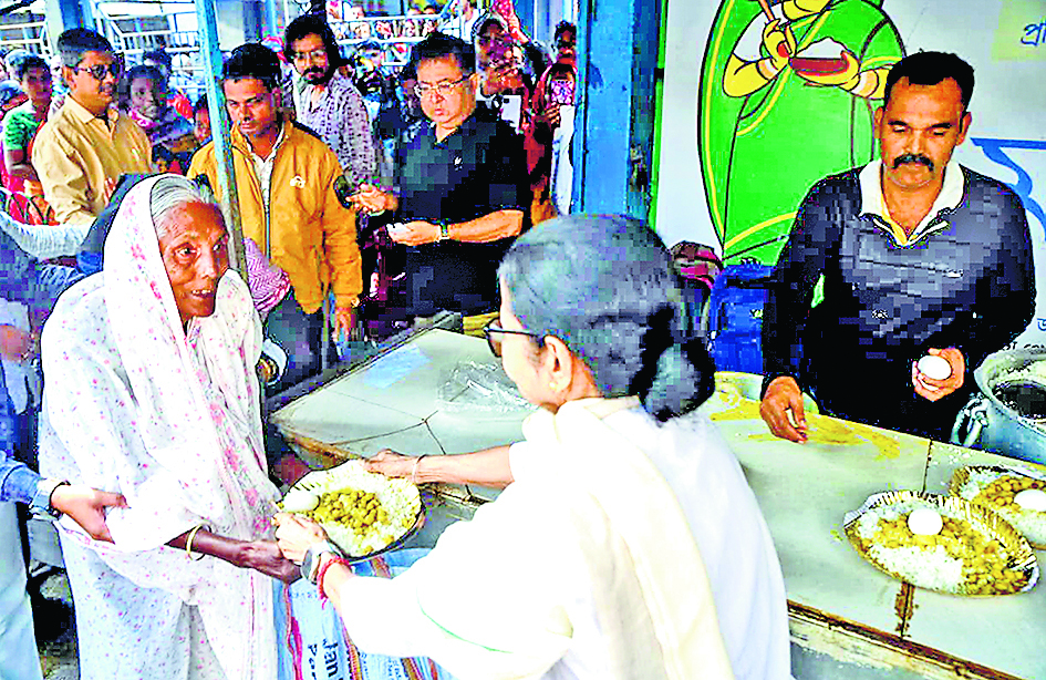 मुख्यमंत्री ममता बनर्जी बुधवार दोपहर कालीघाट स्थित से आवास से निकलने के बाद अचानक एसएसकेएम अस्पताल के सामने कार से उतर गयीं. अस्पताल के सामने मां कैंटीन के पास जाकर खड़ी हो गयीं. मुख्यमंत्री को अचानक वहां देख लोग भी हैरान रह गये. मुख्यमंत्री ने माहौल को सामान्य करने के लिए बातचीत शुरू कर दी. उन्होंने कैंटीन स्टाफ से बात की और पूछा कि आज क्या खाना परोसा जा रहा है. जवाब में कैंटीन स्टाफ ने बताया कि हर दिन की तरह आज भी चावल, दाल और करी के साथ एक उबला अंडा दिया जा रहा है. ममता ने मां कैंटीन का खाना अपने हाथों से कुछ लोगों को दिया. खाना खा रहे लोगों से उन्होंने खाने की गुणवत्ता पर बात की. कई वरिष्ठ लोगों ने खाना सौंपने के लिए मुख्यमंत्री को आशीर्वाद भी दिया. कई लोगों से वहां बातचीत करने के बाद वह फिर अपने कार्यक्रम के लिए निकल गयीं. गौरतलब है कि तीसरी बार राज्य की मुख्यमंत्री बनने के बाद मुख्यमंत्री ने राज्य के अलग-अलग हिस्सों में पांच रुपये में ‘मां कैंटीन’ शुरू की थी. जहां हर दिन दोपहर पांच रुपये में दाल, चावल, करी और उबले अंडे मिलते हैं. यह सरकारी कैंटीन दोपहर 12 बजे से तीन बजे तक चलती है. बताया जा रहा है कि मुख्यमंत्री ने इसके जरिये जन-संपर्क शुरू किया है.