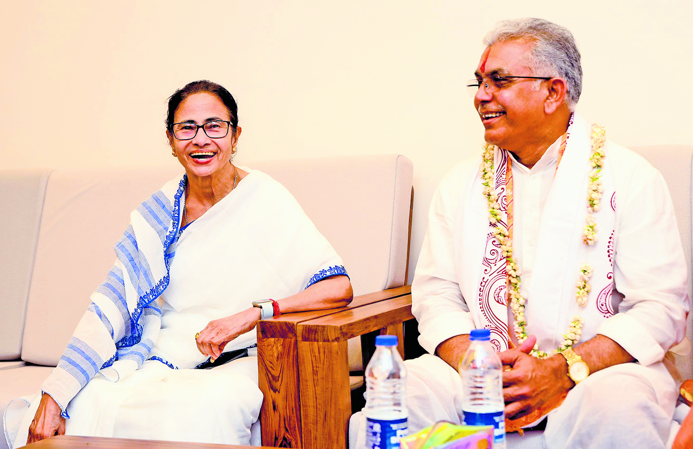 प्रदेश भाजपा के पूर्व अध्यक्ष और पूर्व सांसद दिलीप घोष ने बुधवार को दीघा में जगन्नाथ मंदिर के परिसर में मुख्यमंत्री ममता बनर्जी के साथ मुलाकात की. दिलीप घोष अपनी पत्नी के साथ ममता बनर्जी के बगल में बैठे. दिलीप घोष व ममता बनर्जी की इस मुलाकात से राज्य की सियासत गरमा गयी है. भाजपा के अंदर विवाद देखा जा रहा है.