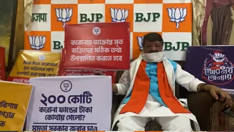 बंगाल भाजपा के प्रदेश अध्यक्ष दिलीप घोष (Dilip Ghosh) ने कहा कि कोरोना महामारी को संभालने में राज्य सरकार की विफलता, कोरोना से संबंधित तथ्यों को छुपाने, प्रधानमंत्री नरेंद्र मोदी द्वारा गरीबों को दिये गये राशन में भ्रष्टाचार, केंद्रीय पर्यवेक्षकों के साथ असहयोग सहित विभिन्न मागों को समर्थन में पूरे राज्य में धरना दिया गया है. चूंकि लॉकडाउन चल रहा है. इस कारण भाजपा नेताओं ने अपने-अपने घरों में रह कर धरना दिया और केंद्र सरकार और आम लोगों का ध्यान आकर्षित किया है.