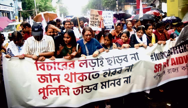 स्टूडेंट फेडरेशन ऑफ इंडिया (एसएफआइ), डेमोक्रेटिक यूथ फेडरेशन ऑफ इंडिया (डीवाइएफआइ) और ऑल इंडिया डेमोक्रेटिक वूमेन एसोसिएशन (एआइडीडब्ल्यूए) की पश्चिम बंगाल राज्य समितियों ने भारी बारिश के बीच कॉलेज परिसर के पास से लालबाजार स्थित कोलकाता पुलिस मुख्यालय तक रैली निकाली. संगठनों ने विरोध रैली का आह्वान करते हुए दावा किया कि पुलिस ने 14-15 अगस्त की दरमियानी रात सरकारी अस्पताल में हुई तोड़फोड़ के संबंध में उनके कुछ नेताओं को नोटिस भेजा है. यहां जूनियर चिकित्सक एक महिला डॉक्टर के साथ बलात्कार-हत्या के खिलाफ प्रदर्शन कर रहे थे और अपने कार्यस्थल पर सुरक्षा की मांग कर रहे थे.एसयूसीआइ ने कोलकाता पुलिस के फैसले का किया विरोध