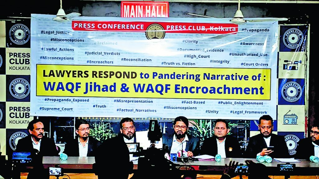 वक्फ बोर्ड कानून के विरोध में अल्पसंख्यक अधिवक्ताओं ने कोलकाता प्रेस क्लब में आयोजित संवाददाता सम्मेलन में 'लैंड जिहाद' और 'वक्फ टेरर' जैसे शब्दों की कड़ी आलोचना की, उन्हें निराधार और स्थापित कानूनी सिद्धांतों के विपरीत बताया. वक्फ फोरम के अधिवक्ता खुर्शीद आलम ने कहा कि वक्फ पर वर्तमान मीडिया नैरेटिव कानूनी निर्णयों पर आधारित नहीं हैं, बल्कि एकतरफा दावों पर आधारित हैं. यह समझना महत्वपूर्ण है कि वक्फ बोर्डों, किसानों या व्यक्तियों द्वारा किये गये दावों का न्यायिक अधिकारियों जैसे वक्फ ट्रिब्यूनल, उच्च न्यायालयों या सर्वोच्च न्यायालय द्वारा फैसला किया जाता है.