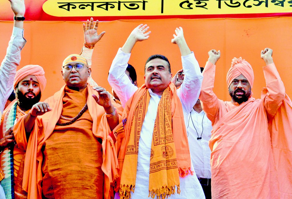 बांग्लादेश में गिरफ्तार हिंदू नेता चिन्मय दास की रिहाई की मांग और वहां अल्पसंख्यकों पर हो रहे अत्याचार के खिलाफ सनातनी एकता मंच की ओर से गुरुवार को कोलकाता के रानी रासमणि एवेन्यू में विरोध प्रदर्शन किया गया. प्रदर्शन में विधानसभा में विपक्ष के नेता शुभेंदु अधिकारी भी शामिल हुए. अधिकारी ने कहा कि पेट्रापोल सीमा पर एक दिन के प्रदर्शन ने बांग्लादेश के होश उड़ा दिये थे.