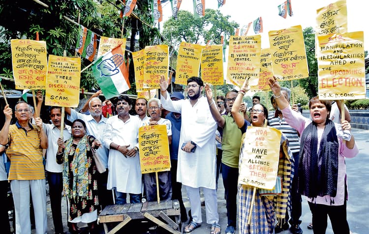 कोलकाता. कांग्रेस कार्यकर्ताओं ने रविवार को यहां विरोध प्रदर्शन किया और मांग की कि पश्चिम बंगाल में मतदाता सूची का विशेष गहन पुनरीक्षण (एसआइआर) नहीं किया जाये. पड़ोसी राज्य बिहार में भी मतदाता सूची का विशेष गहन पुनरीक्षण हो रहा है, जहां इस साल के अंत में विधानसभा चुनाव होना है. पश्चिम बंगाल में 2026 में विधानसभा चुनाव होना है. दक्षिण कोलकाता के भवानीपुर क्षेत्र में प्रदर्शन में भाग लेने वाले कांग्रेस नेता आशुतोष चटर्जी ने कहा : मुख्य मुद्दा बांग्लादेश से अवैध आप्रवासन है. उन्होंने मांग की कि पश्चिम बंगाल में भारत और बांग्लादेश के बीच अंतरराष्ट्रीय सीमा के हर इंच पर बाड़ लगाने के लिए तत्काल कदम उठाये जाये. उन्होंने संवाददाताओं से कहा : हमारे राष्ट्रीय नेतृत्व ने बिहार में मतदाता सूची के विशेष गहन पुनरीक्षण का विरोध किया है और हम पश्चिम बंगाल में भी ऐसा करने की किसी भी योजना का विरोध करते हैं. कांग्रेस कार्यकर्ताओं ने विशेष गहन पुनरीक्षण के खिलाफ नारे लगाये. चटर्जी ने आरोप लगाया कि निर्वाचन आयोग भाजपा के इशारे पर काम कर रहा है. कांग्रेस नेता ने यह भी सवाल उठाया कि राज्य विधानसभा में विपक्ष के नेता शुभेंदु अधिकारी ने वर्तमान में राज्य में 1.25 करोड़ अवैध अप्रवासियों की संख्या कैसे तय की. भाजपा के वरिष्ठ नेता अधिकारी ने दावा किया था कि राज्य की मतदाता सूची में 1.25 करोड़ अवैध अप्रवासियों को जोड़ा गया है और उन्होंने विशेष गहन पुनरीक्षण के माध्यम से उन्हें बाहर निकालने का संकल्प लिया था.