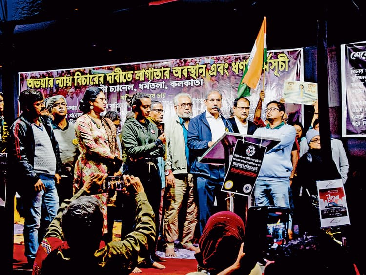 कोलकाता. महानगर के डोरिना क्रॉसिंग पर सीनियर डॉक्टरों के संगठन ज्वाइंट प्लेटफॉर्म ऑफ डॉक्टर्स और अभया मंच का धरना प्रदर्शन 20 दिसंबर से जारी है. कोर्ट के निर्देश के अनुसार, मंगलवार रात नौ बजे तक चिकित्सकों का धरना जारी रहेगा. यह जानकारी ज्वाइंट प्लेटफॉर्म ऑफ डॉक्टर्स के सीनियर सदस्य प्रो. डॉ उत्पल बनर्जी ने दी. उन्होंने बताया कि कलकत्ता हाइकोर्ट के निर्देश पर मंगलवार रात नौ बजे तक हम डोरिना क्रॉसिंग पर धरना देंगे. उन्होंने कहा कि हमारी मांगें पूरी करने के लिए हम सरकार को 24 घंटे का समय दे रहे हैं. इस तय समय में अगर सरकार की प्रतिक्रिया नहीं मिलती है, तो हम वृहतर आंदोलन करेंगे. उन्होंने बताया कि अगर सरकार की कोई प्रतिक्रिया नहीं मिली, तो मंगलवार रात नौ बजे हम अपने अगले कार्यक्रमों की घोषणा करेंगे. इस दौरान चिकित्सकों ने मांग की कि दुष्कर्म व हत्या मामले में सीबीआइ को तुरंत पूरक आरोप पत्र कोर्ट में पेश करे. साथ ही राज्य सरकार वित्तीय भ्रष्टाचार मामले में आरजी कर के पूर्व प्रिंसिपल संदीप घोष के खिलाफ चार्जशीट दायर करने के लिए सीबीआइ को अनुमति दे, सबूतों के साथ छेड़छाड़ करने वालों और घटना से जुड़े मुख्य आरोपियों से पूछताछ हो. सीबीआइ भी अपनी जांच में तेजी लाने की मांग की.धरना पर बैठे चिकित्सकों के संगठन ज्वाइंट प्लेटफॉर्म ऑफ डॉक्टर्स की ओर से आरजी कर पीड़िता के लिए न्याय की मांग पर मंगलवार रात धरना मंच पर जनसभा की घोषणा की है. चिकित्सकों की ओर से यह भी कहा कि गया है कि जो लोग धरना मंच पर नहीं पहुंच सकेंगे, वे अपने-अपने इलाकों में जनसभा आयोजित करें और पीड़िता के लिए न्याय की मांग करें.
