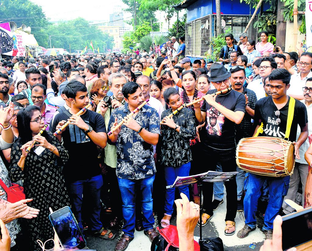 आरजी कर अस्पताल की घटना को लेकर प्रदर्शन कर रहे जूनियर डॉक्टरों के मध्य कोलकाता के रानी रासमणि एवेन्यू के निकट ‘द्रोह’ कार्निवल के आह्वान के बीच कोलकाता पुलिस द्वारा रेड रोड पर ‘पूजा कार्निवल’ के आयोजन को लेकर इसके आस-पास के इलाकों में निषेधाज्ञा लागू कर दी गयी थी.